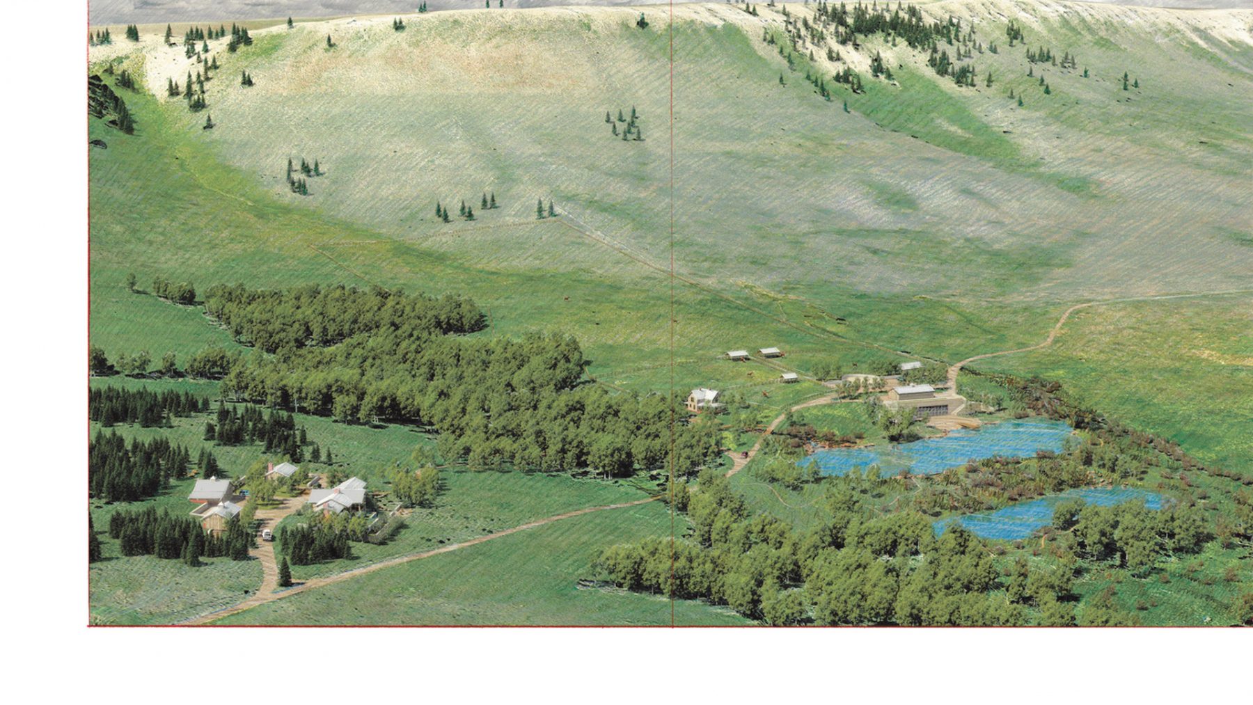 In collaboration with the consultant team, DHM is developing a master plan for this 26,000 acres ranch, located in the expansive Shields Valley of Montana. The diverse ecology spanning the ranch provides a number of unique habitats for a rich dynamic of plants and wildlife. The physical setting of the ranch consists of several drainages, a section of the Shields river, a reservoir, a number of existing structures, existing roads and trail systems and a significant agricultural component including agricultural fields and various irrigation structures.