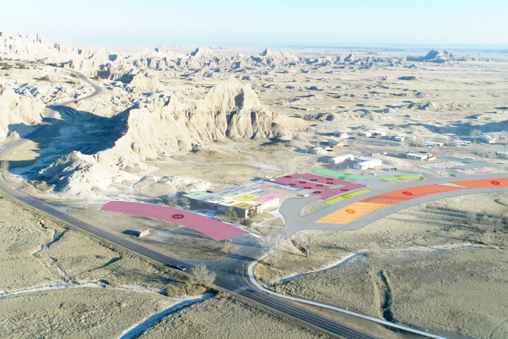 DHM Design completed the Development Concept Plan for Cedar Pass Area of Badlands National Park, South Dakota, to define appropriate uses and functions of the space. The goal of the project was to establish a consistent, unified character for future development and create a road map to guide decisions on capital improvements and preservation. The team examined and provided appropriate improvements for the Ben Reifel Visitor Center, park administrative buildings, park housing, Cedar Pass Lodge and associated outbuildings and cabins, and a park campground and amphitheater while keeping with the park area’s cultural landscape. While developing the DCP, there were concurrent reports and studies including an Environmental Assessment, Historic Structures Report, updates to the site design guidelines and Cultural Landscape Report, Market Analysis, and Business Plan. The process was unique and will set a precedent for future Development Concept Plans and collaborative information gathering and goal setting from multiple resource perspectives.